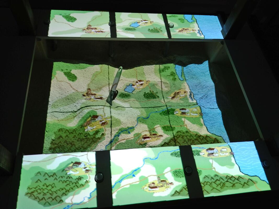 Une image est exposée sur le sable et les abords du bac via un vidéoprojecteur. Une caméra spéciale filme également le sable et permet de repérer les changements de niveau. Nous pouvons dès lors imaginer des jeux où le visiteur doit reconstituer un terrain d'une époque donnée pour retrouver des anciens batiments ou des cours d'eau. Le bac à sable immersif est ludique dans sa manière d'aborder la géographie d'un lieu. Il est possible de reconstituer le travail de fouille archéologique.