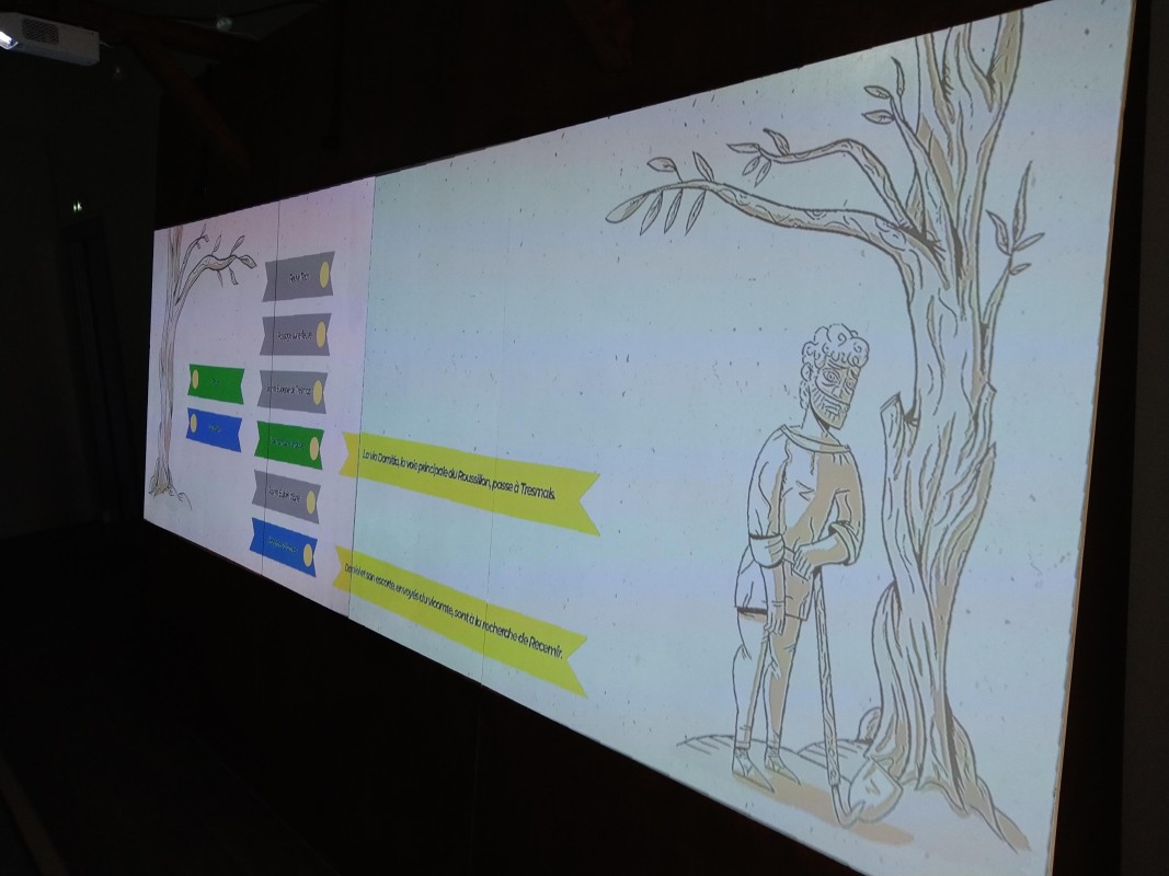 D'une largeur de 4 mètres, un mur tactile permet l'intéraction avec le public. Des systèmes infrarouges permettent de détecter la zone touchée par les gens, ce qui déclenche des actions. Il est possible de zoomer sur des parties de l'écran, d'afficher de nouvelles informations ou de jouer.
